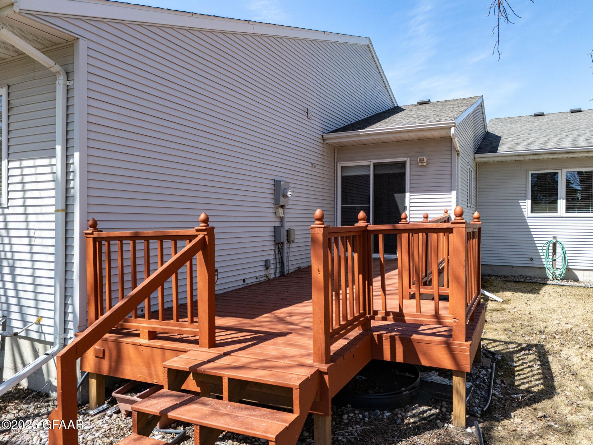 Welcome to this ''Super Nice'' twinhome! A-1 move-in-condition! All on one level! End unit, double att garage w/ceiling fan, Epoxy floor. Newer furnace & C/A, newer wood laminate flooring, gas fireplace. Primary ensuite bed/bath, 2nd bedroom & 3/4 bath, main floor laundry. Kitchen/dining w/patio door to the back deck. Island, vaulted ceiling, recessed lights, custom backsplash. All appliances included.